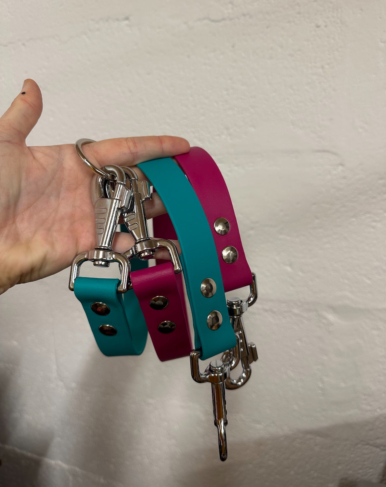 biothane cherry punch / lagune - bouclerie argent - largeur 25mm - sans poignée
