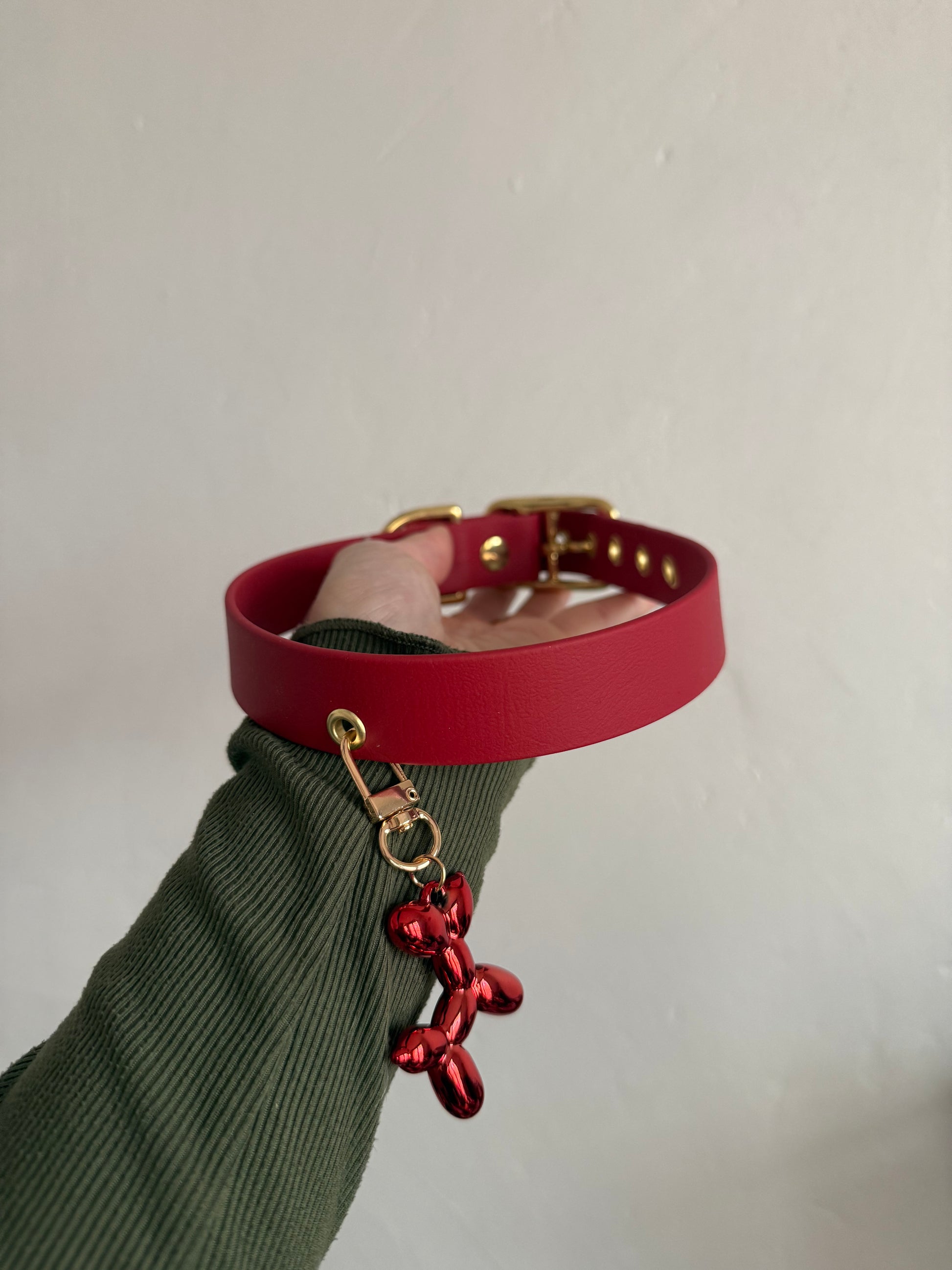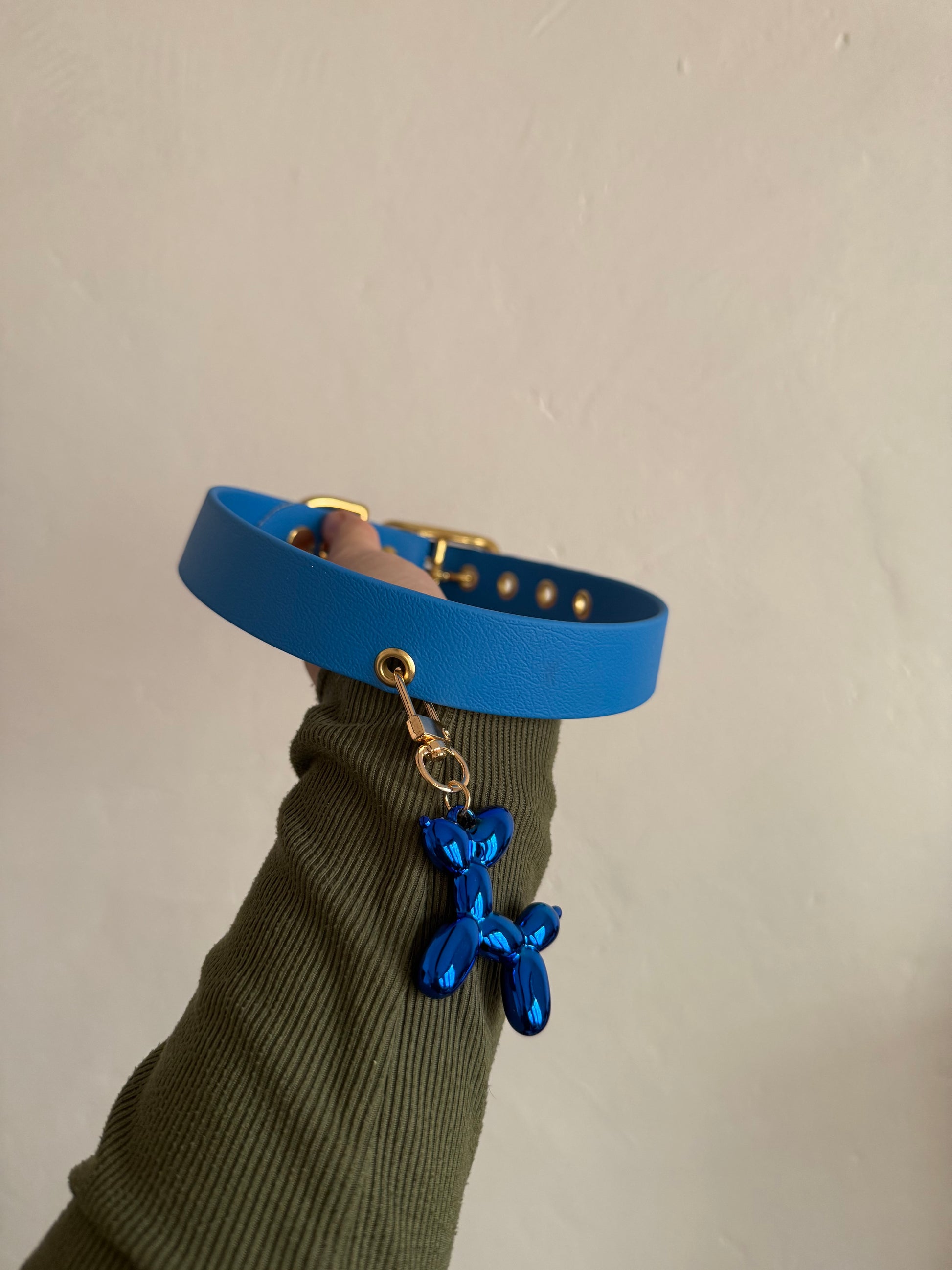 Un collier en 25mm, orné de strass ou de perles marbrées et décoré d’une breloque chien gonflable