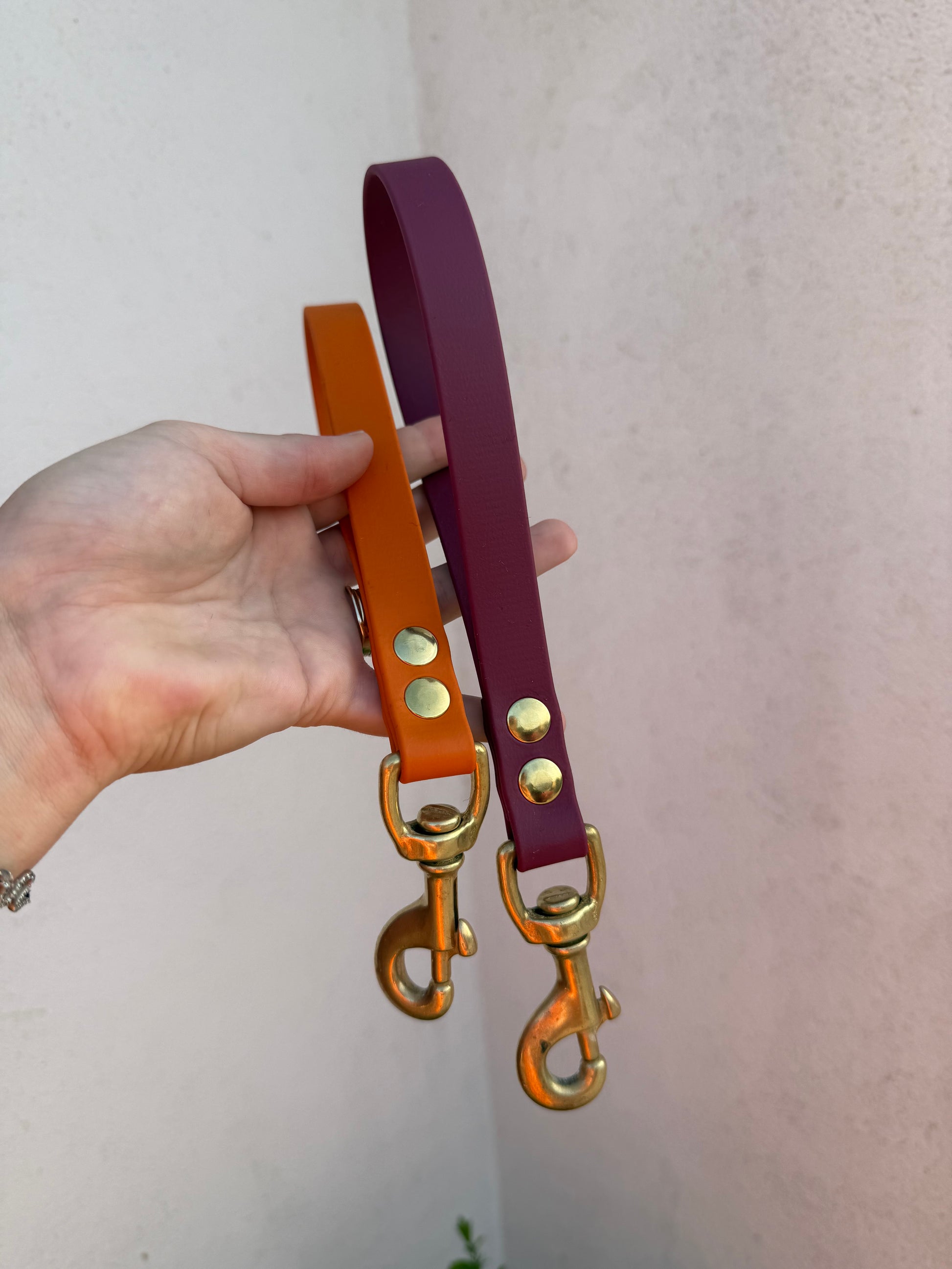 poignée 19mm, finition classique or, biothane rust & bordeaux