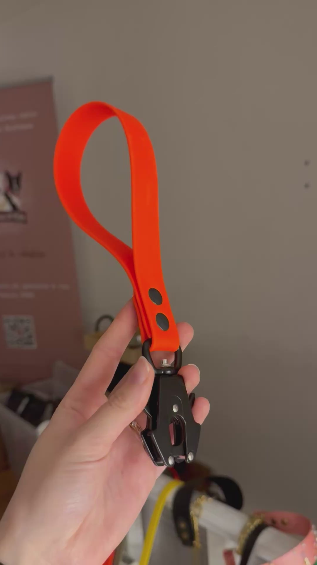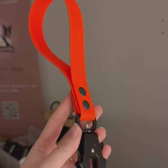 poignée 19mm, orange néon, mousqueton tactique noir