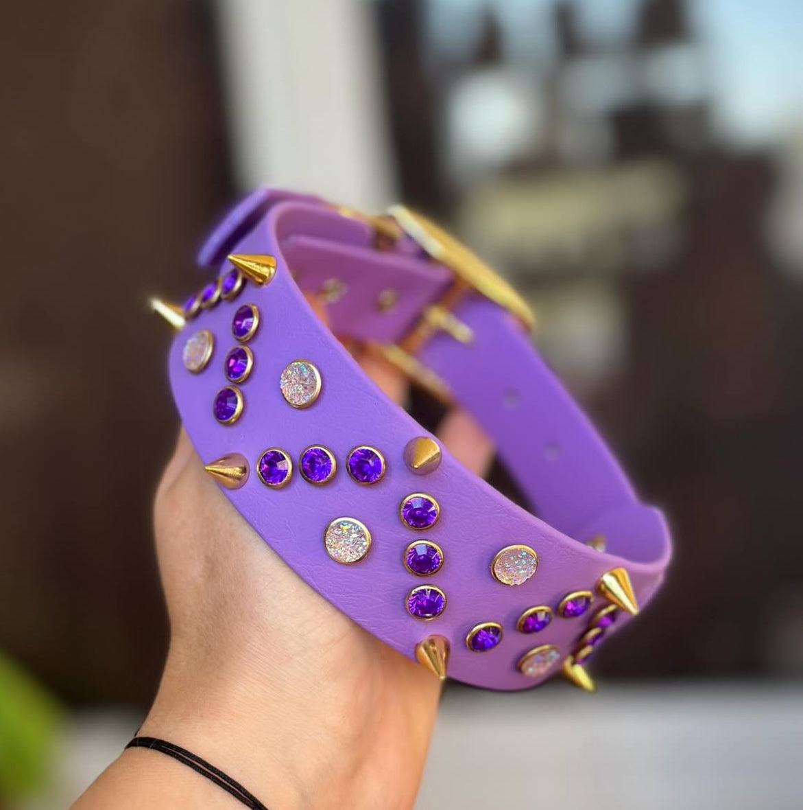 Biothane atomic, boucle or, strass comme présenté sur le modèle, ton sur ton